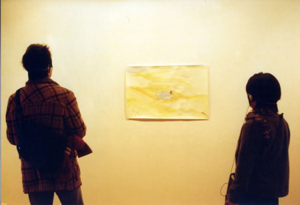 インスタレーション、紙に水彩、テクスト、ポータブル・カセット・プレイヤー、ヘッドセット。 ガレリアラセン、東京、1999年